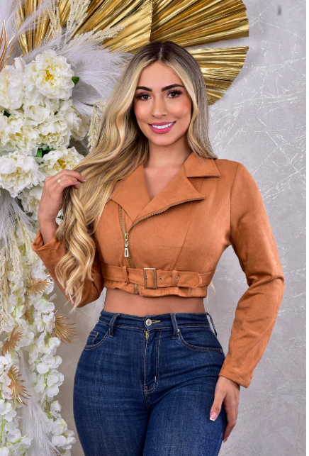 Chaqueta Corta Con Cinturón Para Dama
